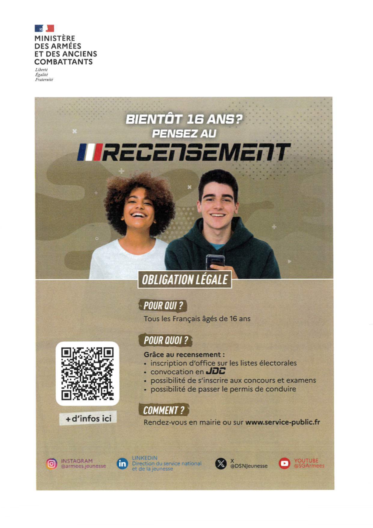 BIENTÔT 16 ANS ? PENSEZ AU RECENSEMENT !