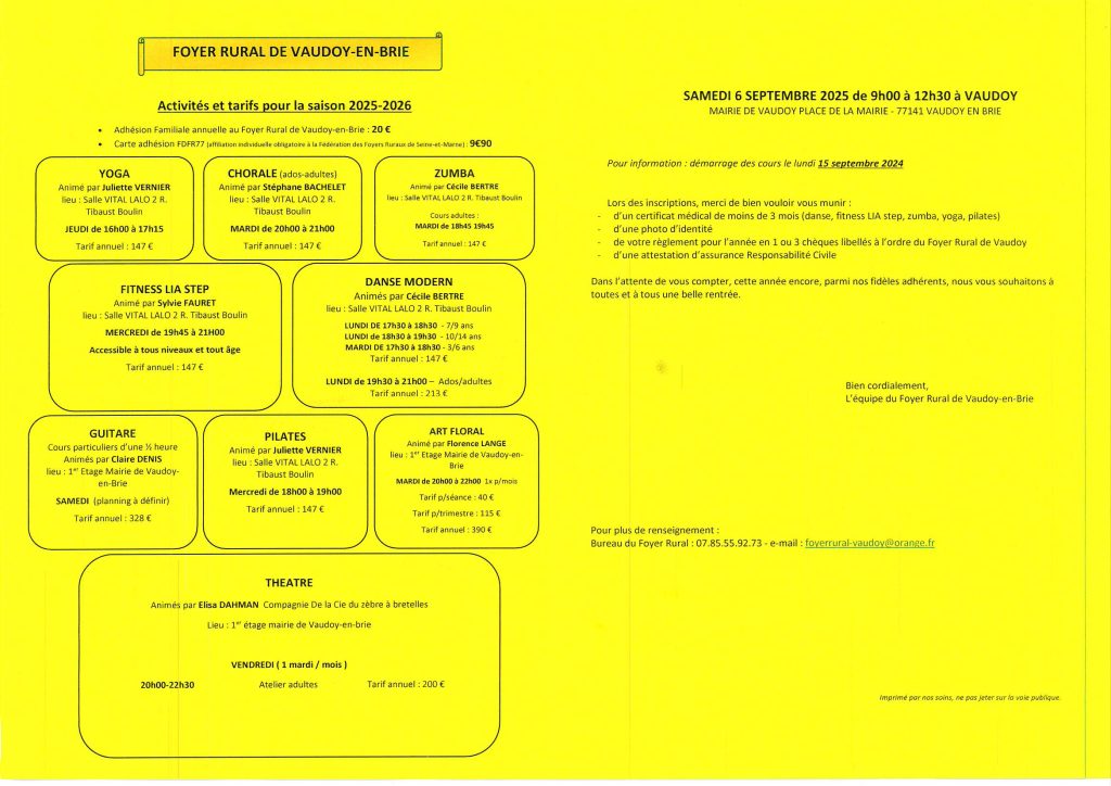 FOYER RURAL ACTIVITÉS ET TARIFS 2025-2026