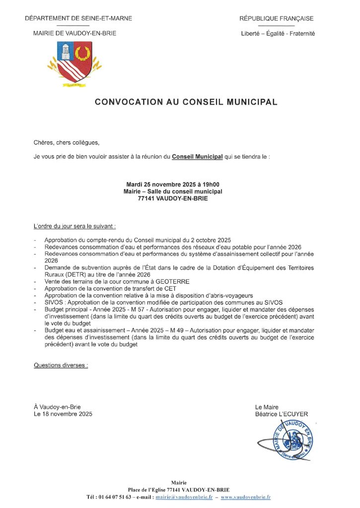 CONSEIL MUNICIPAL DU MARDI 25 NOVEMBRE 2025