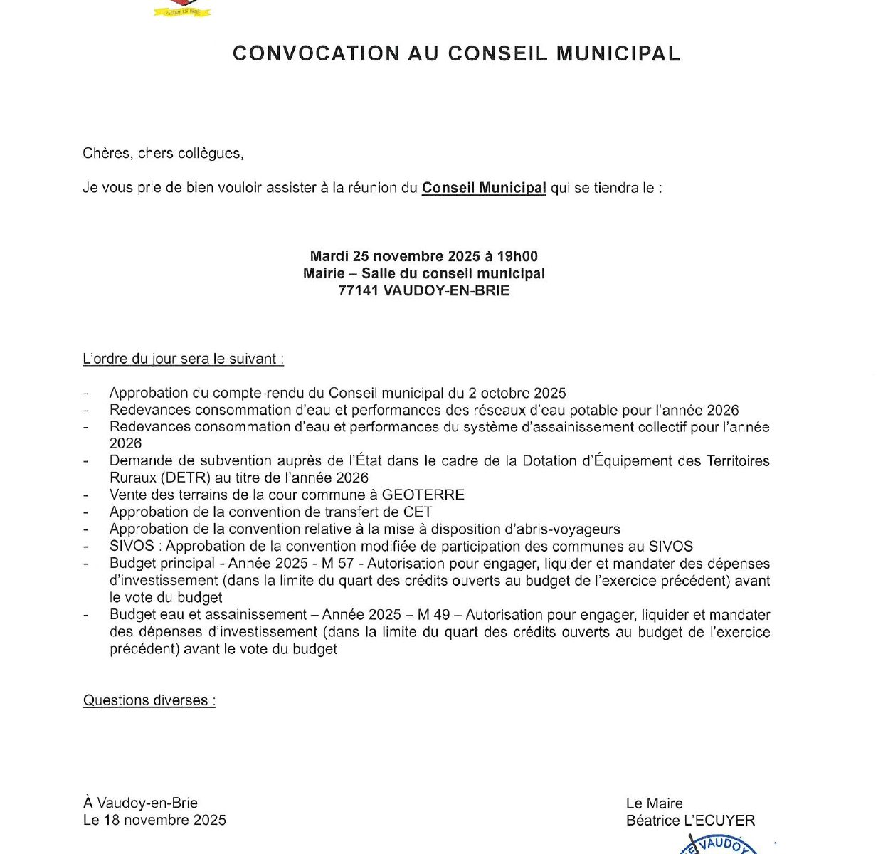 CONSEIL MUNICIPAL DU MARDI 25 NOVEMBRE 2025