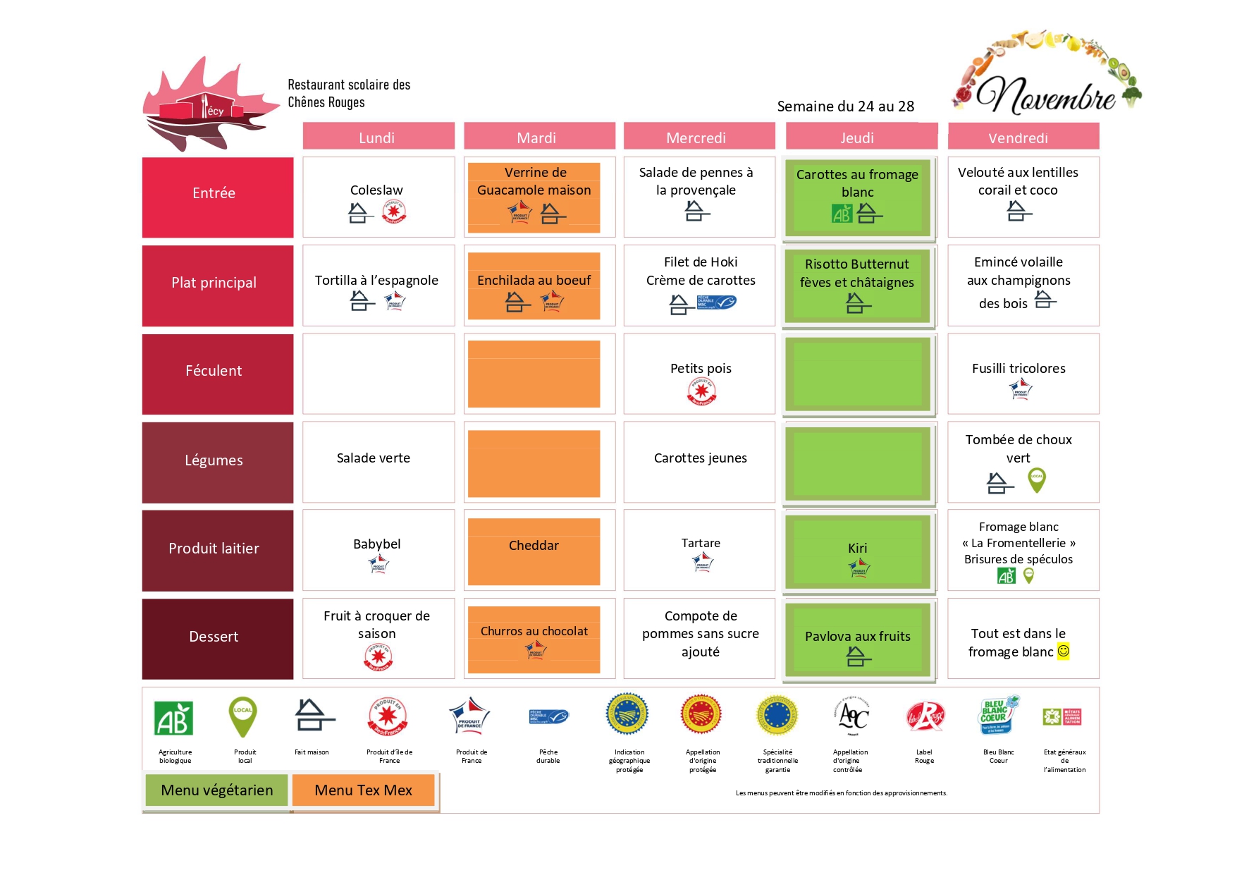 MENU DE LA SEMAINE DU 24 AU 28 NOVEMBRE 2025