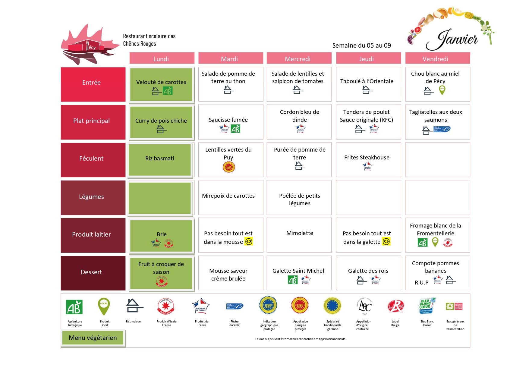 MENU DE LA SEMAINE DU 05 AU 09 JANVIER 2026