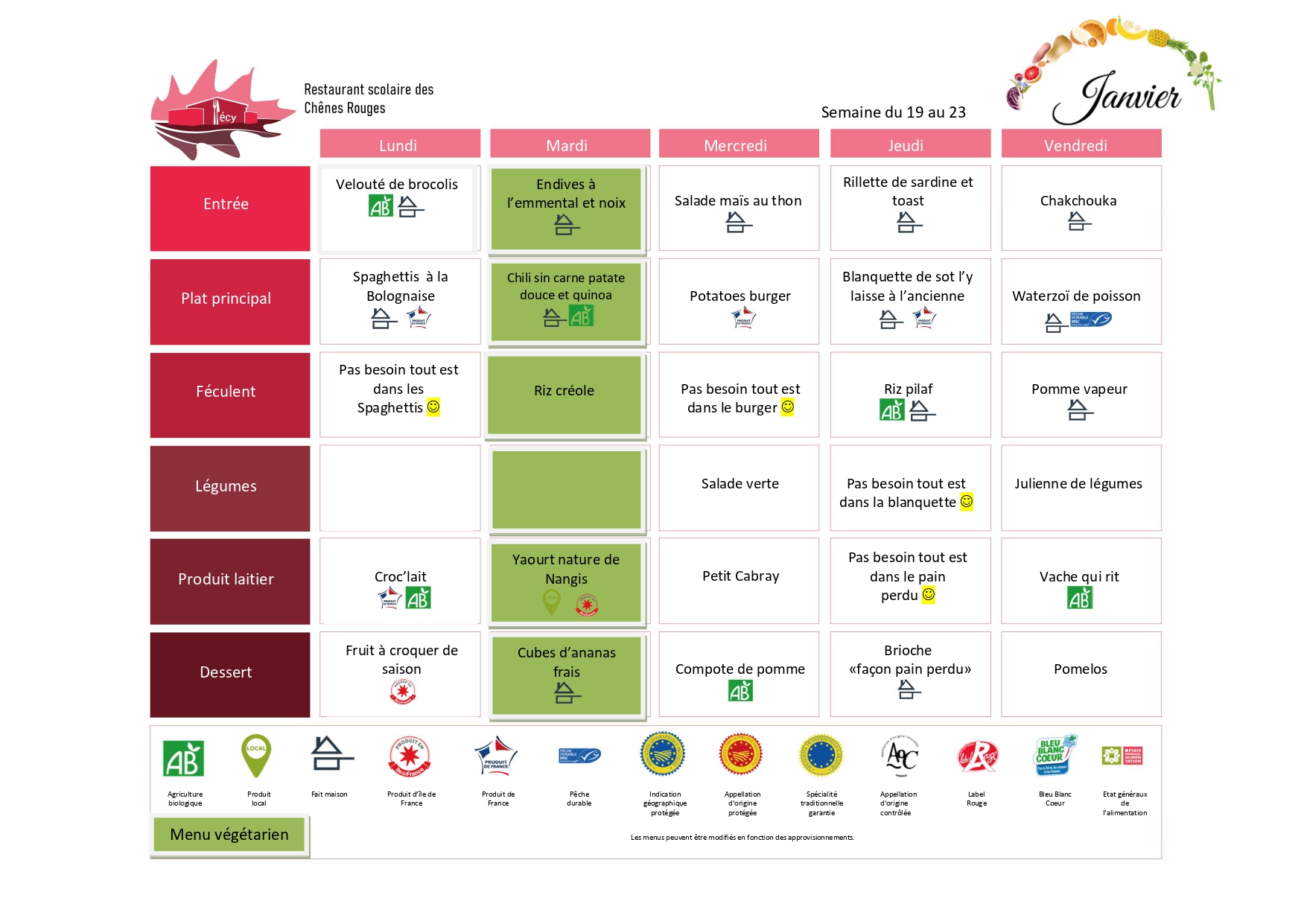 MENU DE LA SEMAINE DU 19 AU 23 JANVIER 2026