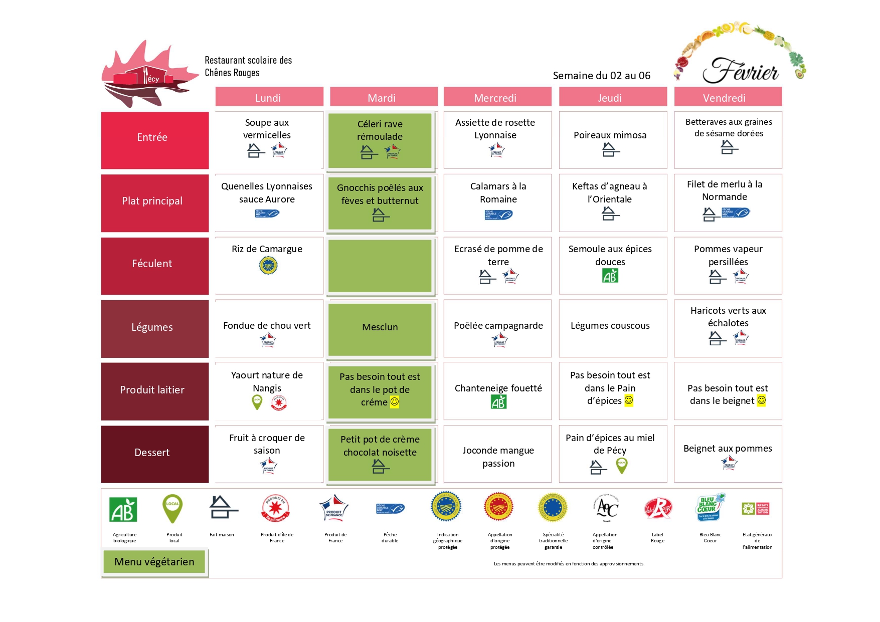 MENU DE LA SEMAINE DU 2 AU 6 FÉVRIER 2026
